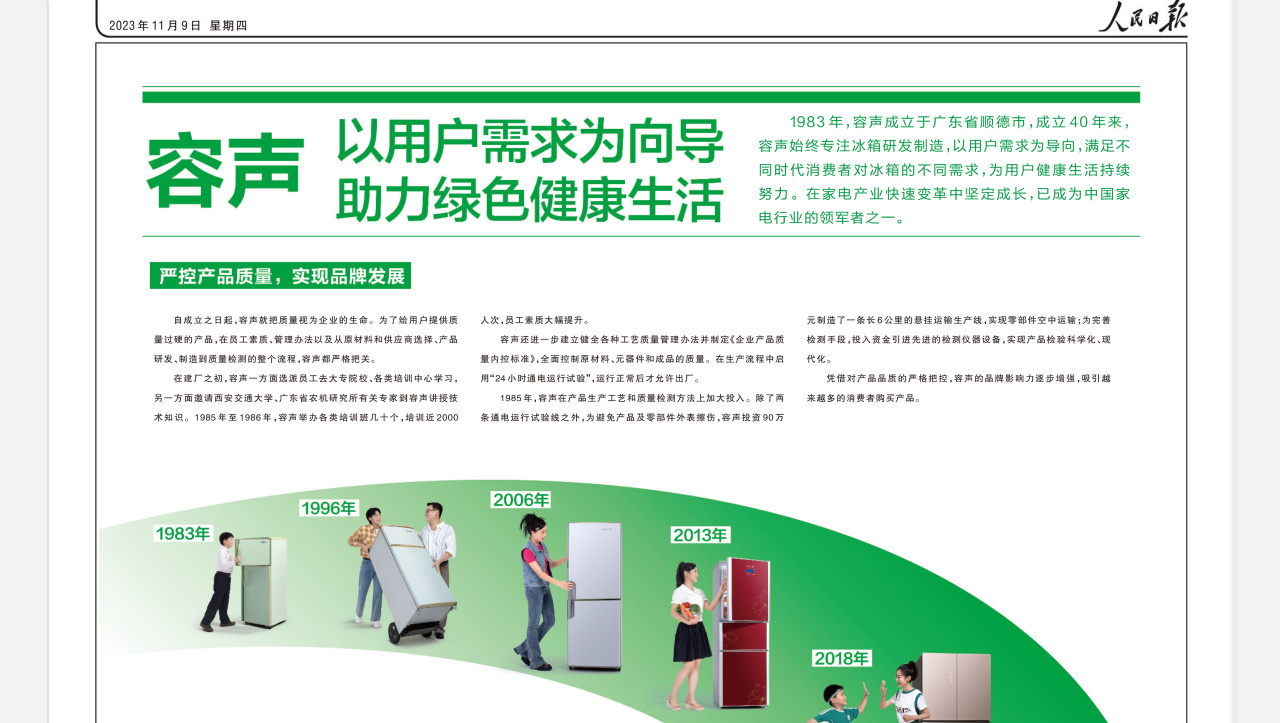 容声冰箱以“以用户需求为向导 助力绿色健康生活”为题上版人民日报。