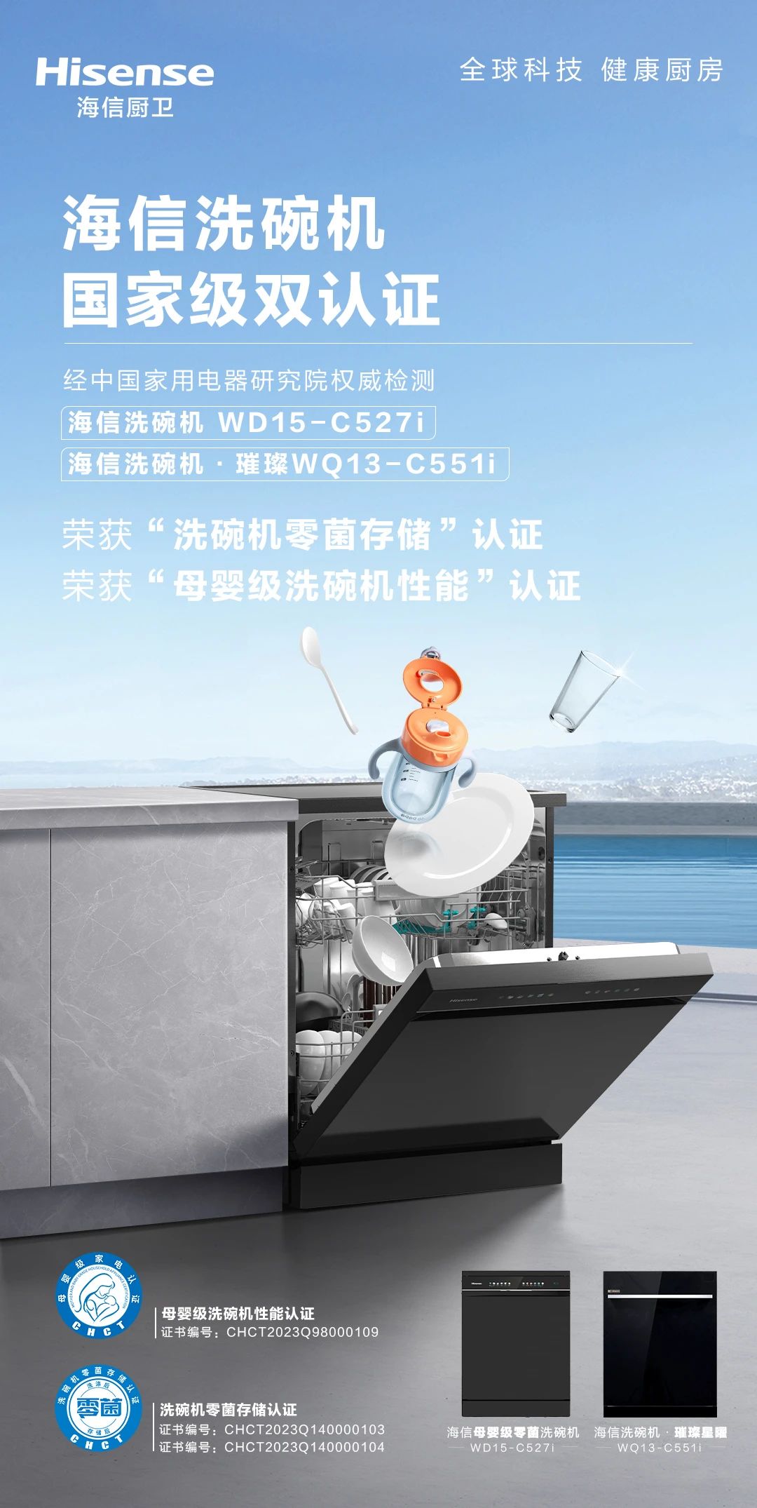 海信洗碗机获中家院“洗碗机零菌存储”“母婴级洗碗机性能”双认证