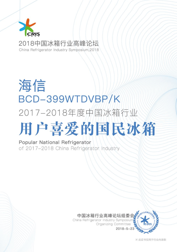 2017-2018年度中国冰箱行业用户喜爱的国民冰箱